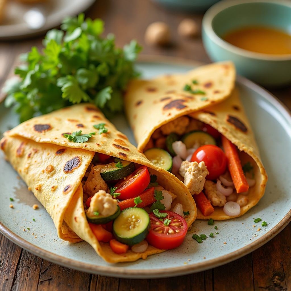 Este plato es una fuente rica de proteínas magras, provenientes del pollo, y contiene fibra a través de los vegetales. La elección de la masa de roti, que puede ser integral, y el uso de aceite de oliva contribuyen a un equilibrio nutricional. Si quieres un toque más ligero, puedes usar masa de roti integral o reducir el aceite de oliva.