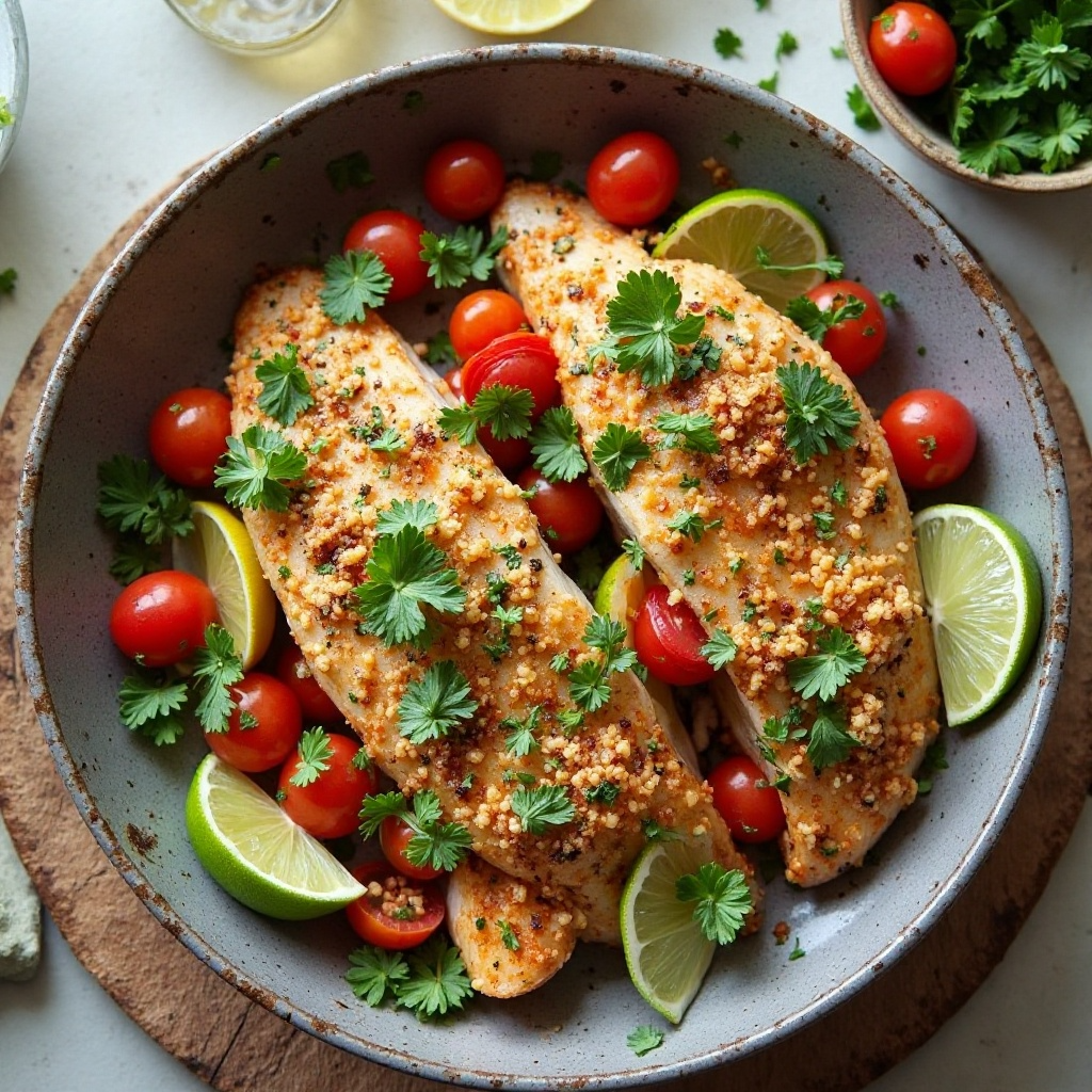 El pescado es una excelente fuente de proteínas magras y ácidos grasos omega-3. La menta libia y las hierbas frescas aportan antioxidantes que pueden ayudar a la digestión. Este plato es bajo en grasa y alto en sabor, perfecto para quienes buscan platos saludables pero llenos de sabor.