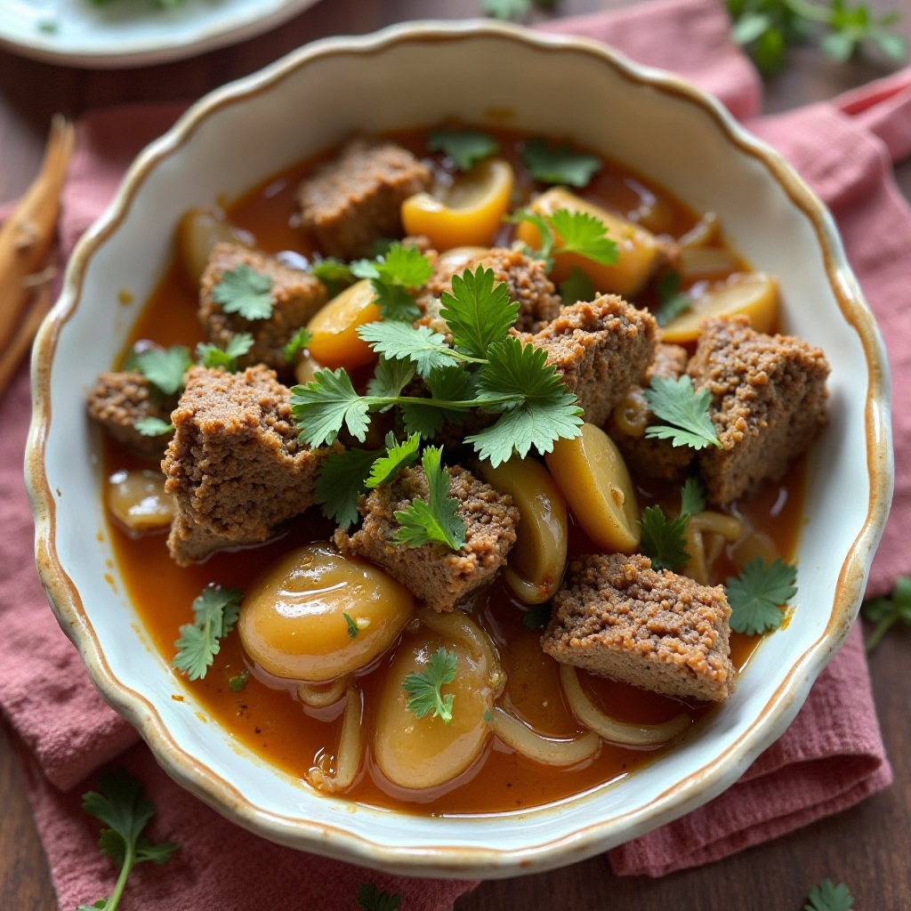 Sakhulan es un plato tradicional de Almaty, la ciudad más grande de Kazajistán. Originario de la región de Karaghyz, este plato combina una rica carne con verduras y kumis, un tipo de yogurt fermentado que es un elemento básico en la dieta kazaja. Kumis se prepara a partir de leche de yegua y aporta un sabor único y ácido a los platos. Esta receta ofrece un toque distintivo al introducir kumis en una preparación que sería tradicionalmente salada.