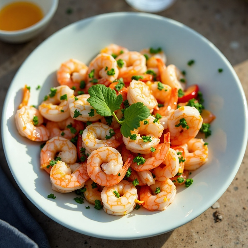 La salada de camarón al estilo ceviche es rica en proteínas y bajos en calorías, gracias al consumo de camarones frescos. El jugo de limón contribuye a la digestión y contiene vitamina C, mientras que los vegetales aportan fibra y antioxidantes. Si prefieres una versión sin marinar (para evitar el riesgo de cocción a baja temperatura), puedes simplemente saltear los camarones con aceite de oliva y los ingredientes antes de servir.