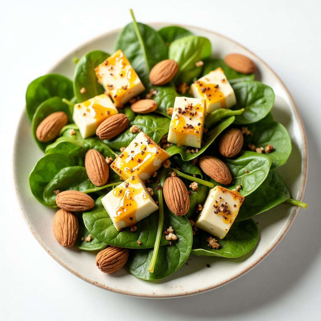 - Tuesta las almendras ligeramente en una sartén hasta que estén crujientes. Añade a la mezcla de espinacas y queso.