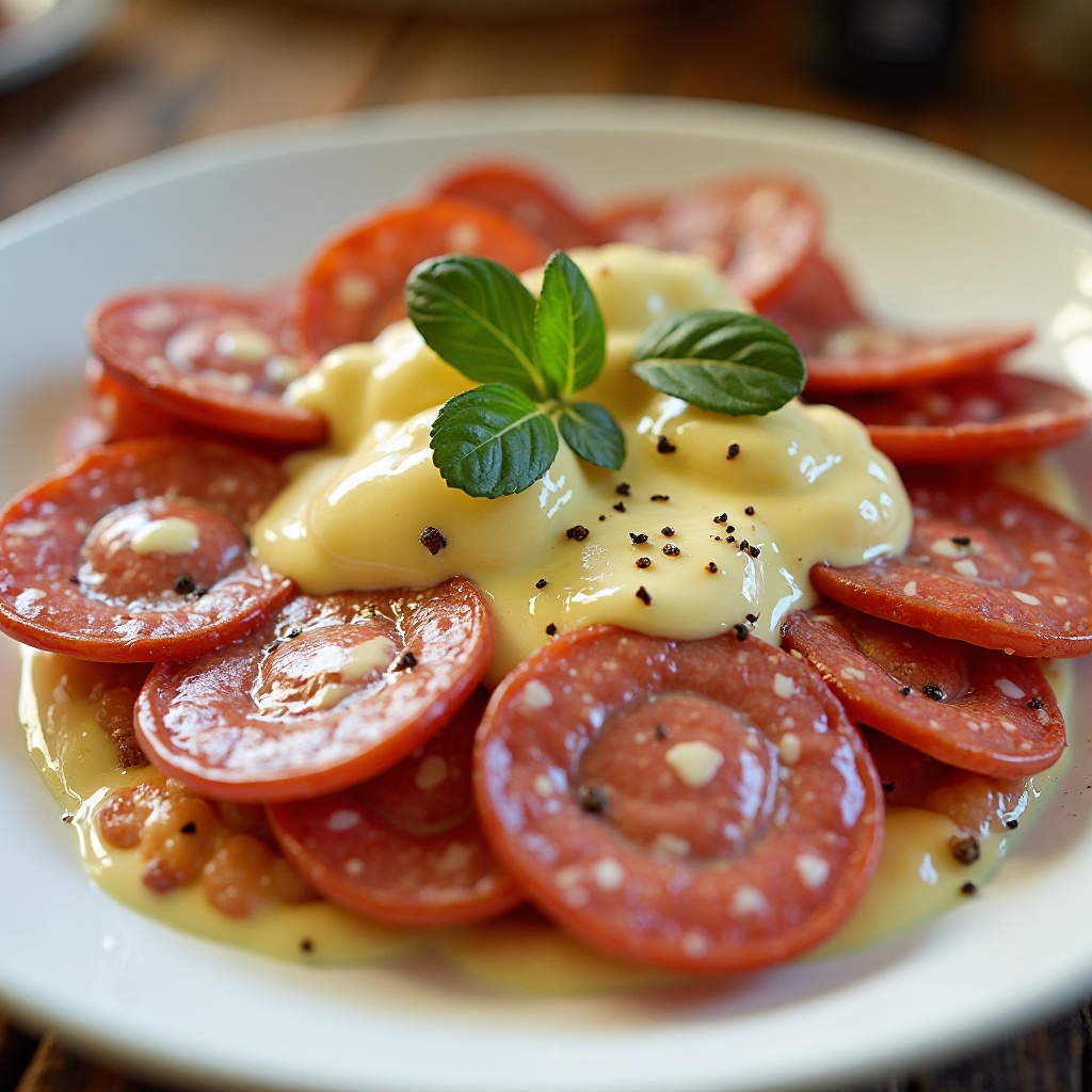 6. Sirve caliente en platos individuales, dejando que el queso se derrita sobre las rodajas de salami. ¡Disfruta de este plato tradicional con un toque moderno!