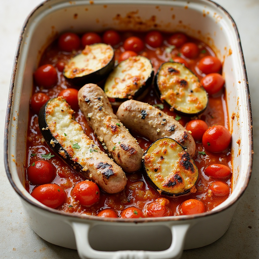 Este plato es rico en proteínas y fibra gracias a las salchichas y las berenjenas. El uso de especias como el comino y la paprika añade beneficios antioxidantes. Para aquellos preocupados por el contenido de grasa, este plato puede disfrutarse con moderación, y se puede ajustar el queso parmesano según el nivel de grasas permitido.
