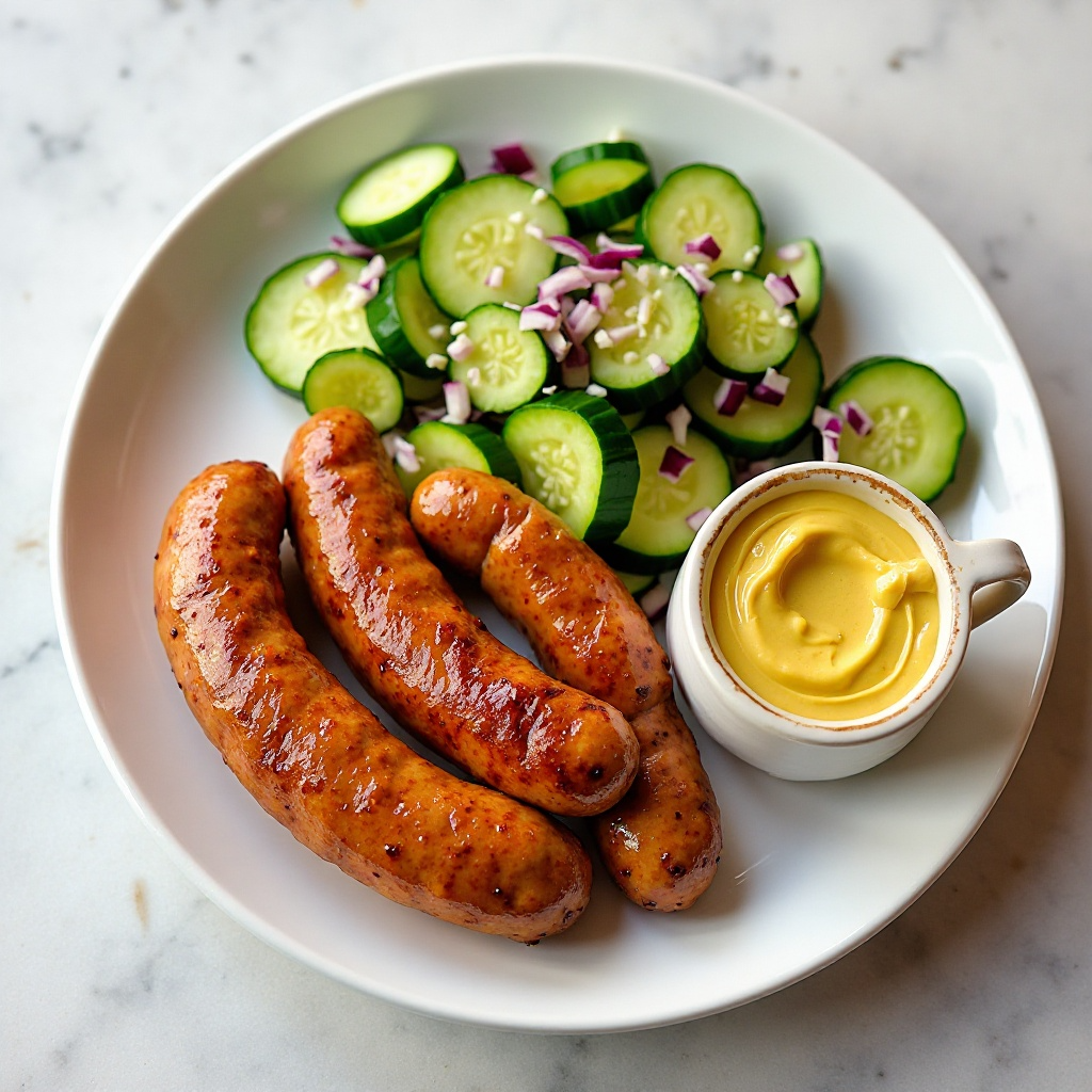 Receta de Salchichas de Solothurn con Salsas de Mostaza Suizas y Ensalada Fresca