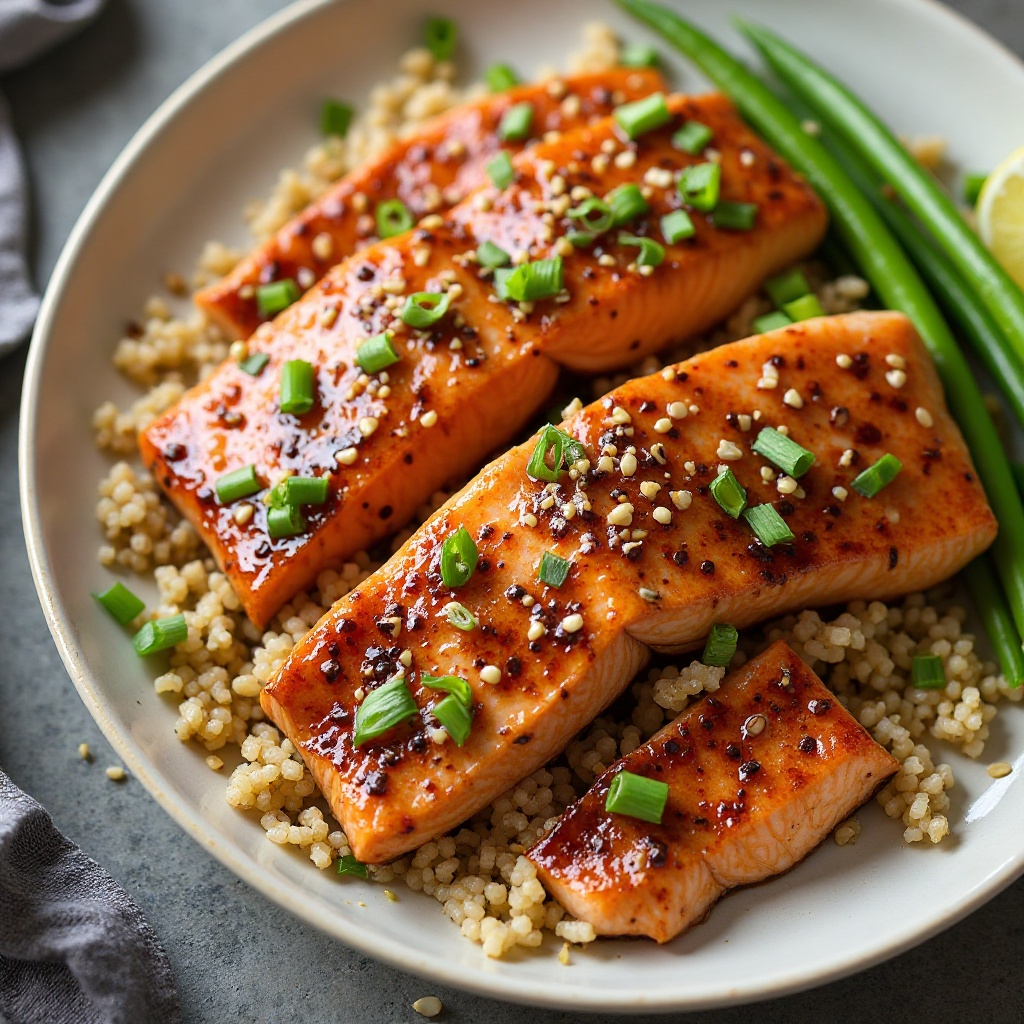 El salmón es una fuente rica en omega-3, proteínas magras y ácidos grasos esenciales. La salsa teriyaki y la mezcla maridada aportan un toque de dulzura equilibrado con un poco de intensidad. El vino Oregón utilizado en esta receta no solo realza el sabor del plato sino también puede ofrecer beneficios antioxidantes.