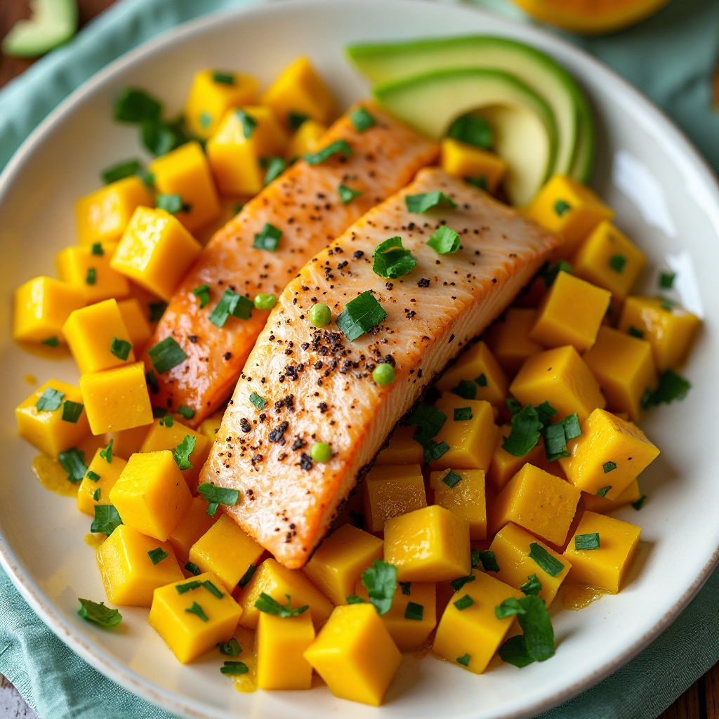 Receta de Salmón Tropical con Mango y Aguacate, inspirada en Honiara, Las Islas Salomón