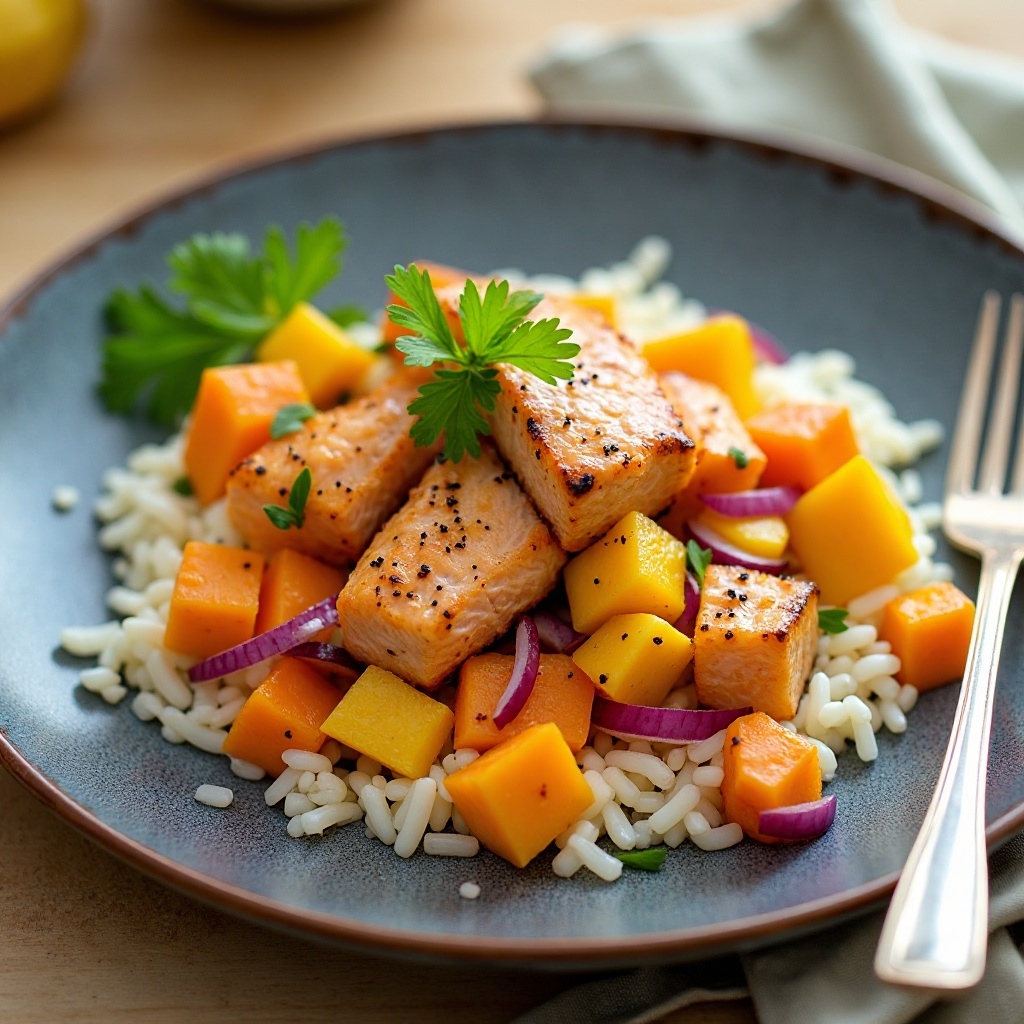En el corazón de las Islas Salomón, donde la abundancia de frutas tropicales es un tesoro natural, este plato captura la esencia de la región. Inspirado en las técnicas de cocina locales que combinan sabores frescos y saludables, esta receta ofrece una deliciosa manera de disfrutar de frutas exóticas como la papaya y el mango junto con un pescado sabroso como el salmón.