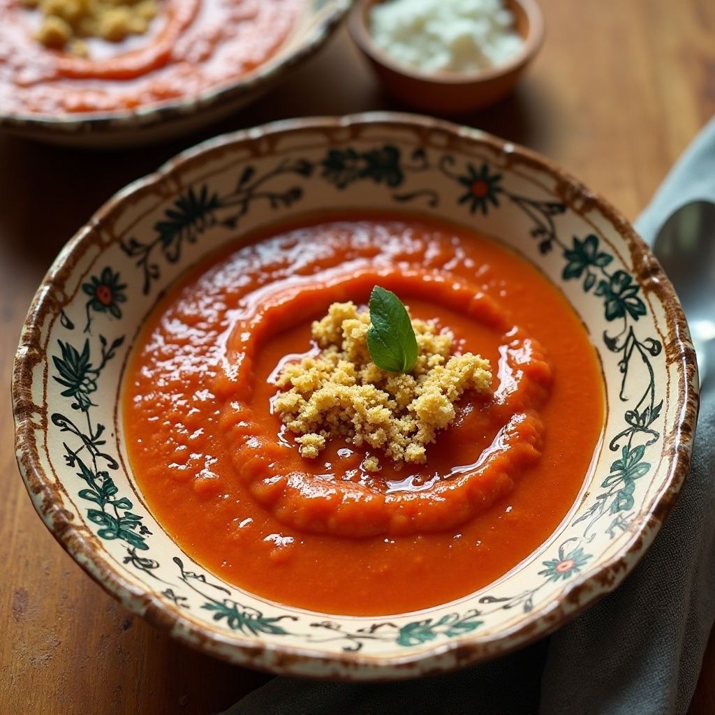 El salmorejo es un plato emblemático de la región andaluza, especialmente en Córdoba y Sevilla. Esta versión especial con aceite de oliva de Jumilla destaca la importancia del aceite de oliva en la cocina española, considerada un pilar de su gastronomía. Jumilla, ubicada en la región de Murcia, es famosa por sus variedades de aceitunas y aceites de oliva con reconocidas propiedades organolépticas, lo que hace que este plato tenga una calidad única.