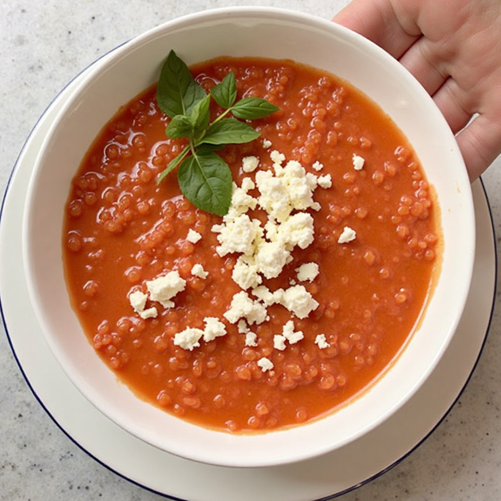 El salmorejo es un fresco plato andaluz, similar al gazpacho pero más espeso y tradicionalmente servido frío. La adición de queso de cabra local de la isla de Ibiza le da un toque único, convirtiendo esta receta en una opción perfecta para un almuerzo ligero o incluso como aperitivo.