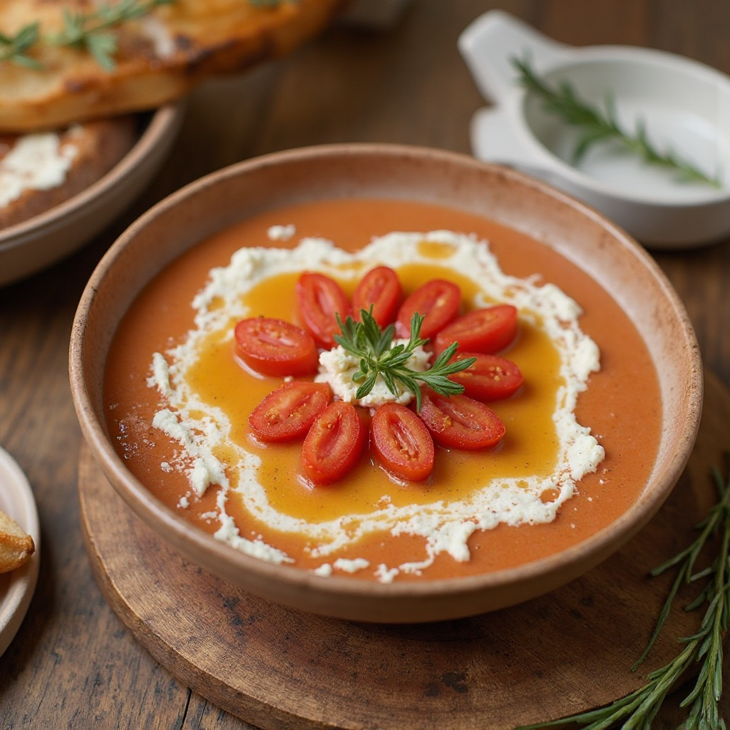 El Salmorejo es una sopa fría originaria de Andalucía, España, conocida por su textura cremosa y ligeramente picante. Este plato ha sido adaptado para incluir el Jamón de Trevélez, un jamón de calidad reconocido en la región andaluza, y Queso de Cabra de Guadix, una variedad de queso curado en Granada, España. Esta versión añade un toque gourmet a la receta tradicional, ideal para ocasiones especiales o para degustar con amigos.