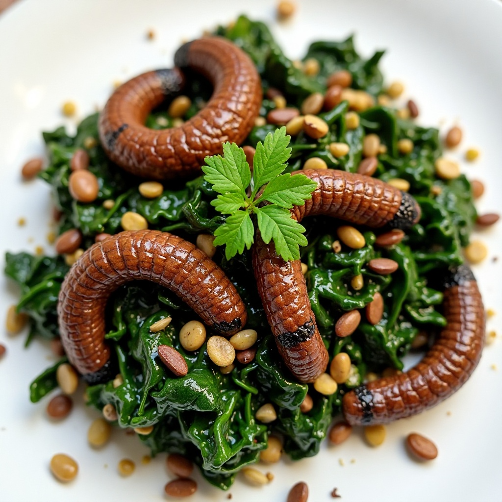 Receta de Salteado de Mopane Worms con Espinacas y Salsas