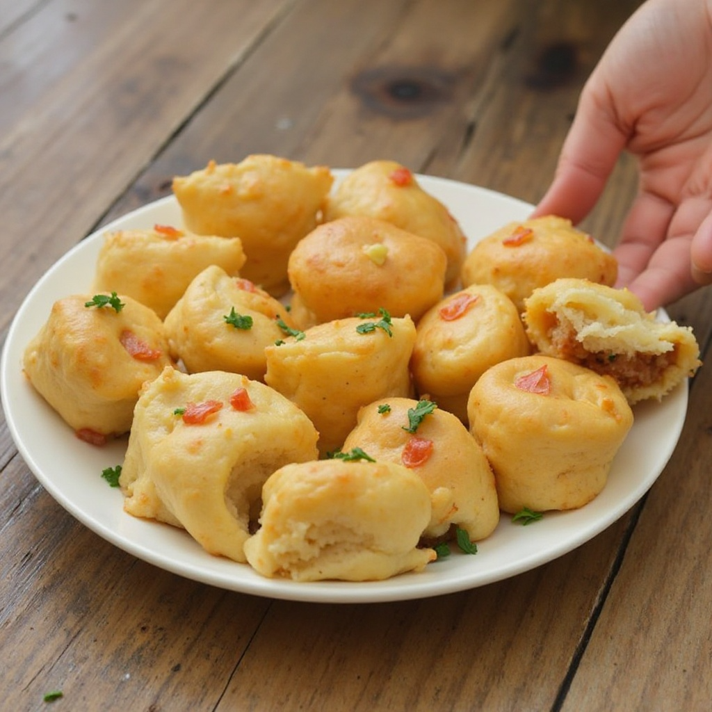 - Rellena cada bola de masa con una porción del relleno preparado y forma un paquete cerrado, asegurando que no queden ingredientes sueltos.