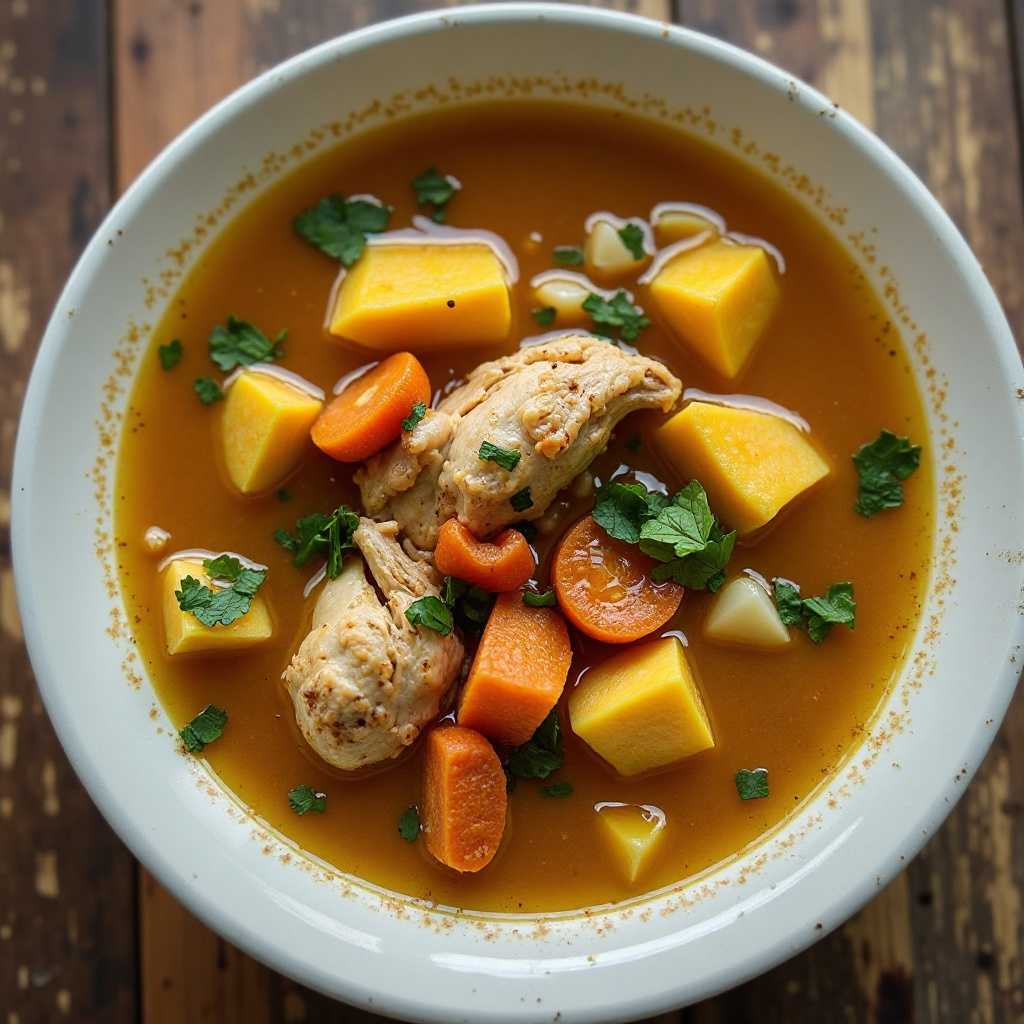 - Sirve el sancocho caliente, añadiendo sal y pimienta al gusto, y acompaña con el pollo y un poco de arroz blanco si es tu preferencia.