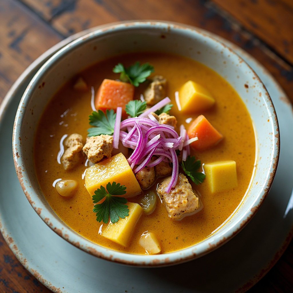 - Sirve caliente en platos hondos, decorando con cebolla morada picada para un toque colorido y crujiente.
