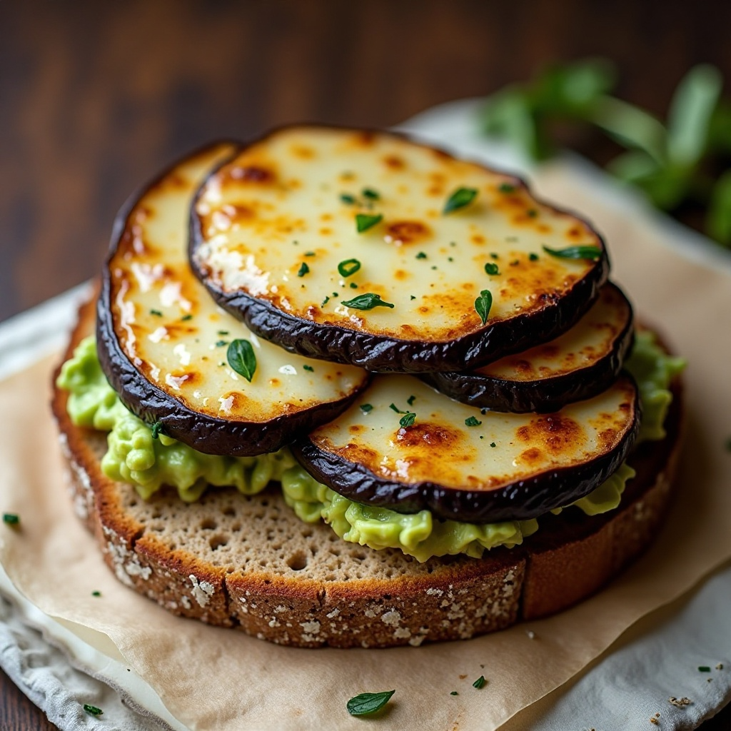 Este sándwich es una opción saludable al combinar proteínas magras del queso con los beneficiosos antioxidantes de la berenjena. La elección del pan integral proporciona fibra, esencial para una dieta equilibrada. La adición opcional de aguacate aumenta el contenido de grasas saludables y vitamina E.