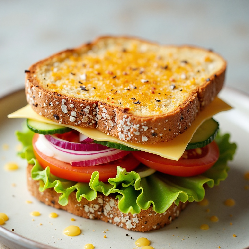 Este sándwich ofrece una buena fuente de proteínas, gracias al queso cheddar, y contiene vegetales frescos ricos en vitaminas y minerales. La elección del pan integral añade fibra, mientras que el queso proporciona calcio necesario para la salud ósea.
