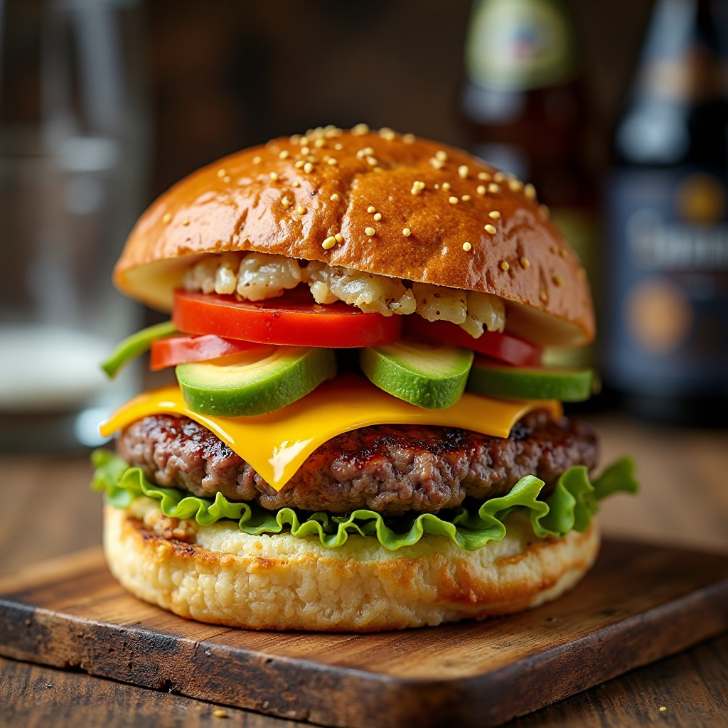 Receta de Sándwich de Hamburguesa Artesanal con Emmental y Cerveza de Differdange