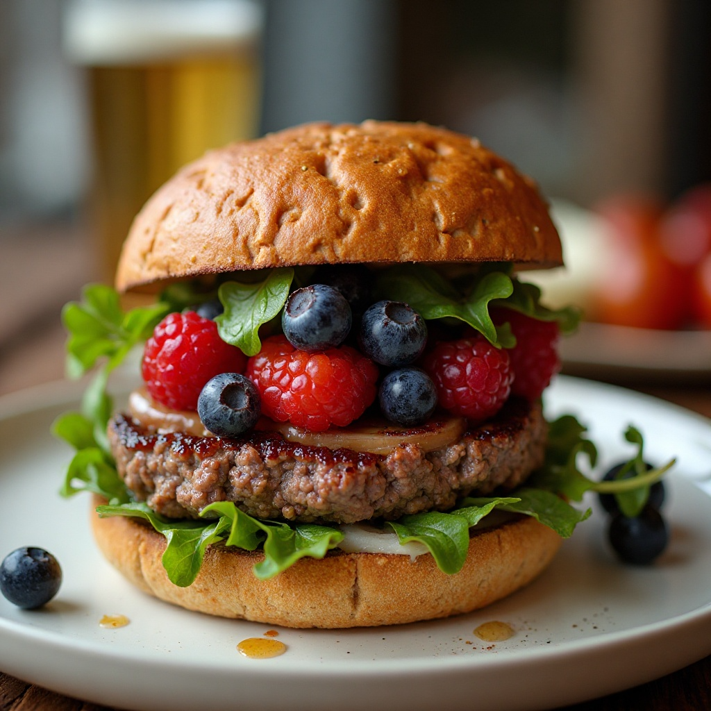 Receta de Sándwich de Hamburguesa Artesanal con Ensalada de Frutas y Aderezo a la Cerveza