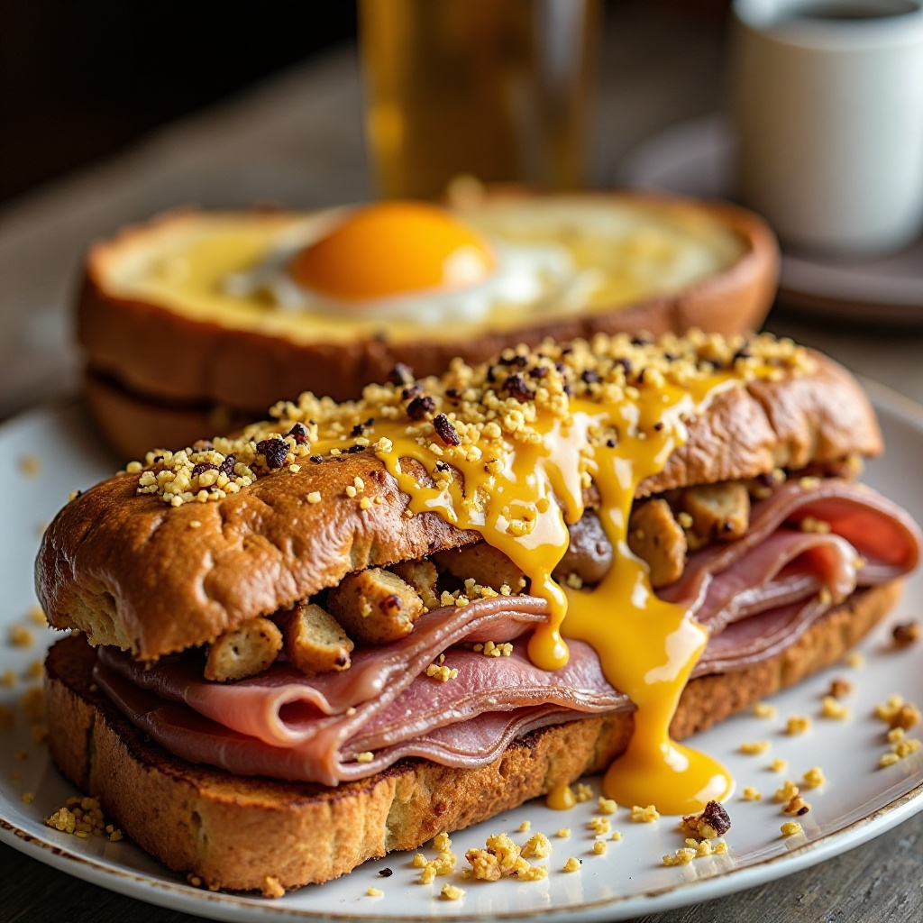 Este sándwich es una indulgencia que ofrece proteínas y grasas saludables del jamón y el queso gruyere. El foie gras, aunque considerado un alimento con alto contenido de grasa, puede ser disfrutado ocasionalmente como parte de una dieta equilibrada. Reduce la cantidad para aquellos que monitorean su consumo de grasa.