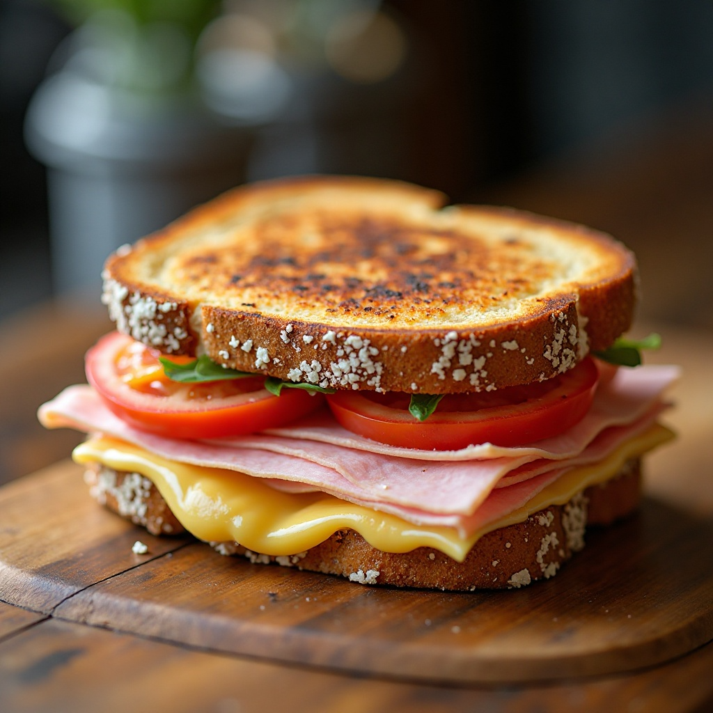 Este sándwich ofrece una combinación de proteínas (del jamón y el queso) y fibra (del pan integral), lo cual es beneficioso para el consumo diario. Es importante asegurarse de que el queso esté fresco y que los ingredientes se mantengan en condiciones adecuadas de refrigeración antes de su preparación.