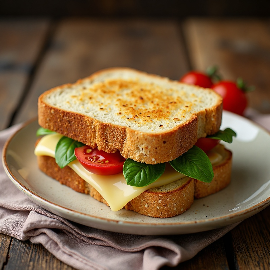 El queso Asiago es un queso semi-curado rico en proteínas y calcio, lo cual ayuda a mantener los huesos fuertes. La opción de pan integral proporciona fibra, esencial para un buen tránsito intestinal. Para mantener una dieta equilibrada, considera reducir la cantidad de sal añadida y optar por aceites de oliva con alto contenido de antioxidantes.