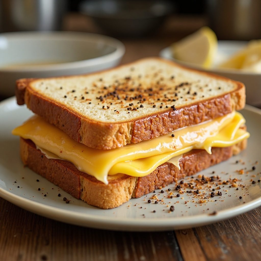 - Retira las rebanadas de queso del fuego y colócalas en el pan de trigo. Espolvorea con pimienta negra recién molida.