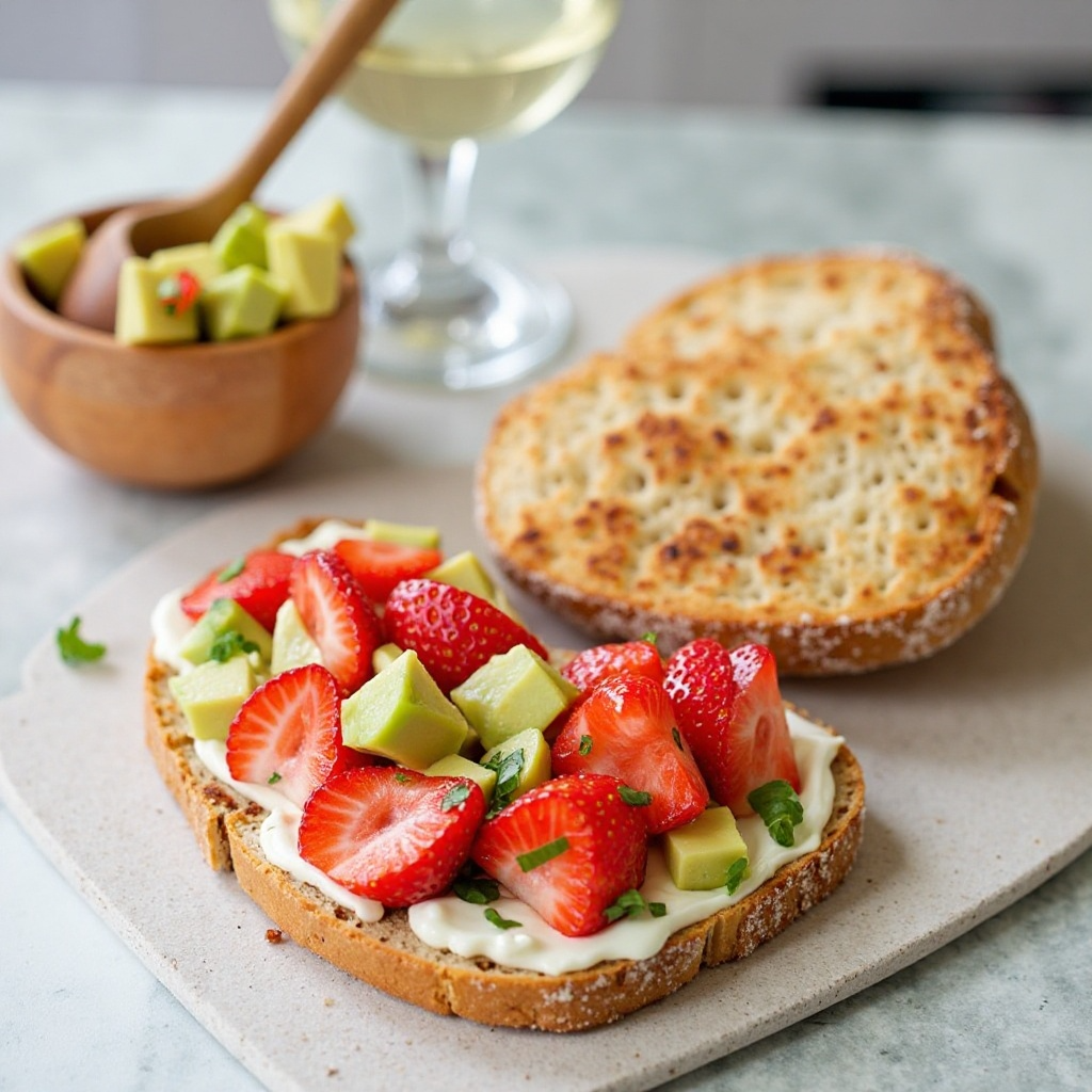 El queso y las fresas son alimentos ricos en nutrientes. El queso mozzarella es una buena fuente de calcio y proteínas, mientras que las fresas son ricas en vitamina C y antioxidantes. Añadir aguacate aporta grasas saludables que pueden mejorar la absorción de nutrientes.