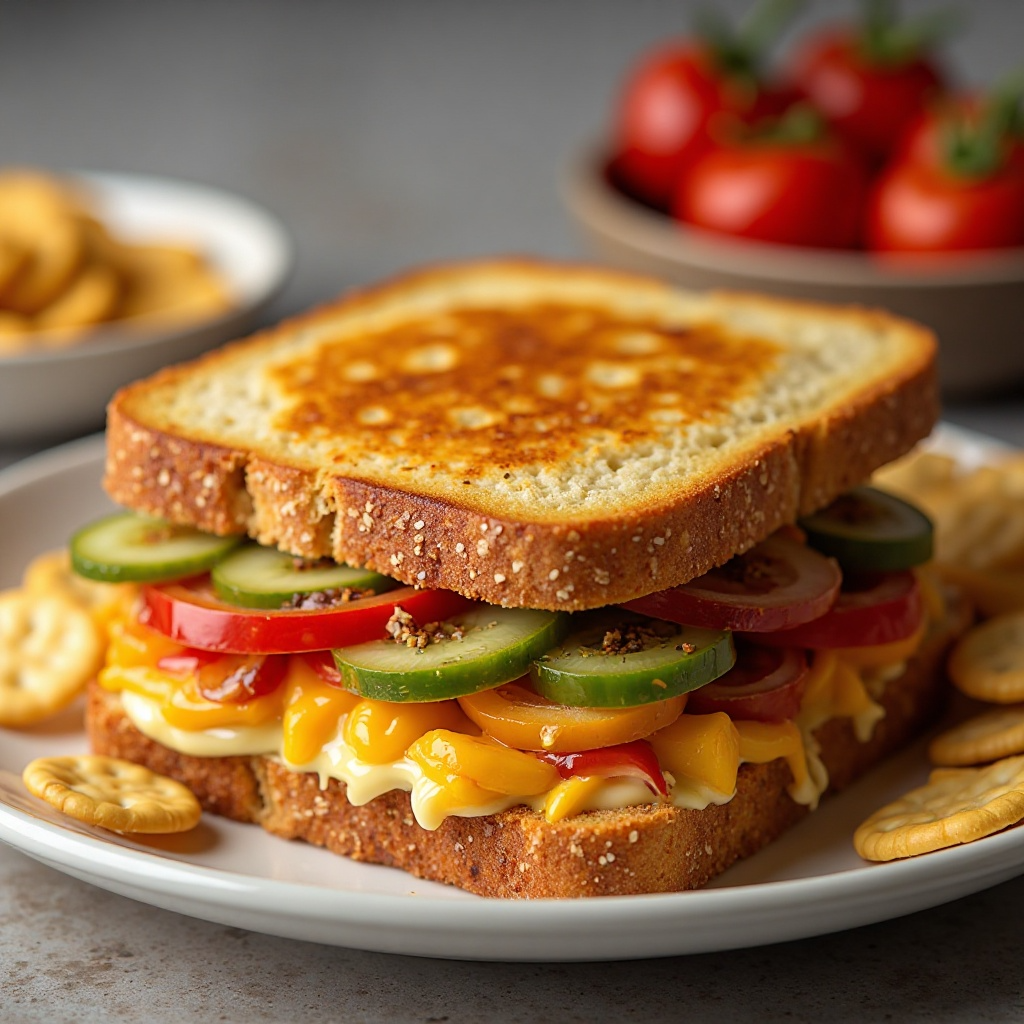El sándwich de queso y pimiento es un plato clásico de América del Norte, y una versión adaptada con galletas de queso para Alfarrate, en Georgia, ofrece un toque local que refleja la diversidad culinaria de Estados Unidos. Este sándwich combina el sabor tostado de las galletas de queso con el cremoso y jugoso relleno de queso y pimiento.