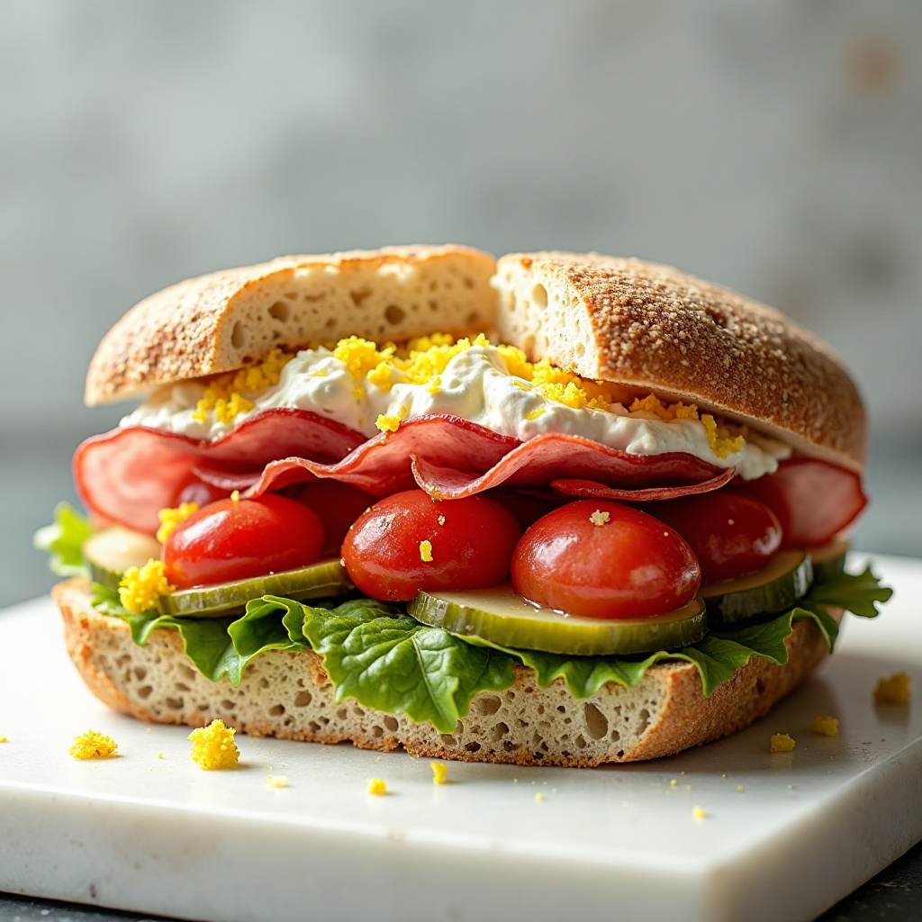 Este sándwich es una opción sabrosa y saludable que equilibra proteínas del salame con los beneficios de la cerveza, rica en antioxidantes. La ensalada rusa aporta vitaminas y fibra, mientras que el pan integral proporciona carbohidratos complejos. Para adaptar el sándwich a necesidades dietéticas específicas, considera opciones sin gluten para el pan o reducciones en la cantidad de salame si es necesario.