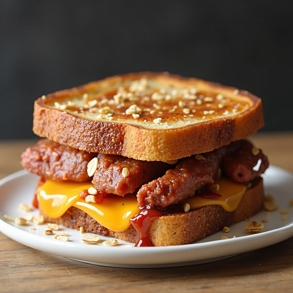 Este sandwich es una versión creativa del clásico Hot Brown, adaptado para un sabor regional de Paducah, Kentucky. Inspirado por la rica tradición de la carne de salchicha y el bourbon en la regiót, combinamos elementos clásicos de Hot Brown, como el queso Manchego y la avena, con ingredientes locales y una salsa BBQ a base de leche condensada. Este plato es perfecto para un almuerzo o cena ligera.