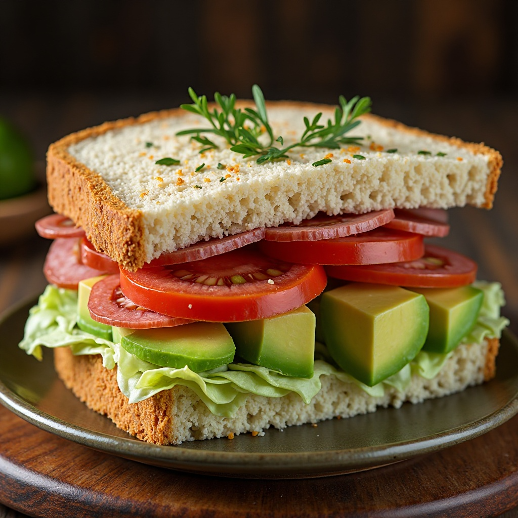 Este sándwich ofrece una buena combinación de proteínas, grasas saludables (del aguacate), y antioxidantes (de la lechuga). El uso de țuică y salami proporciona nutrientes esenciales, aunque es importante elegir opciones bajas en grasa o sin grasa si se sigue una dieta específica. El tomate es rico en licopeno, un compuesto con propiedades antioxidantes.