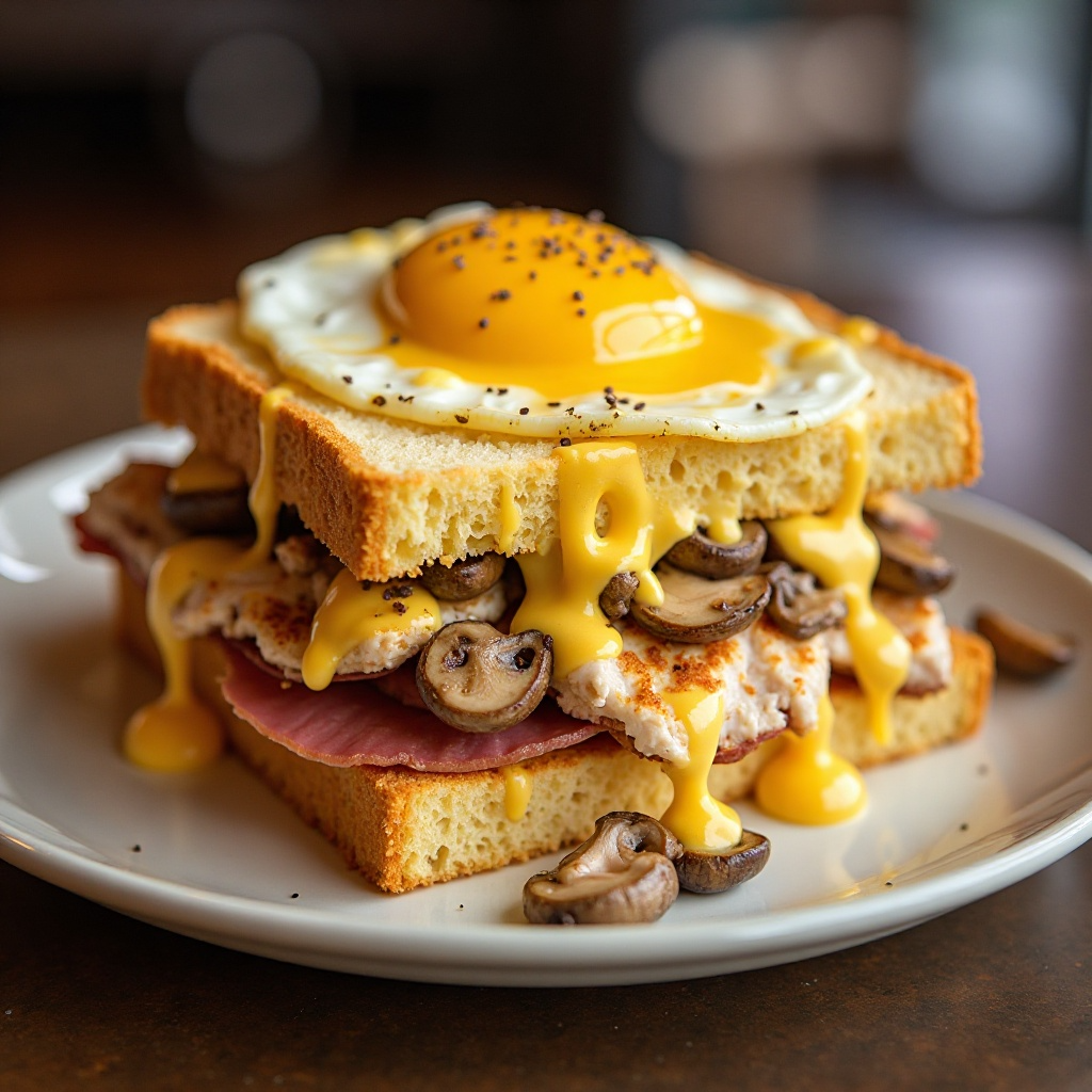 Este sándwich es una excelente fuente de proteínas gracias al pollo y al jamón. Los champiñones aportan fibra y antioxidantes. La salsa bechamel, aunque rica en calorías, proporciona una textura cremosa y un sabor delicioso. Para una versión más ligera, se puede reducir la cantidad de queso o usar queso bajo en grasa.