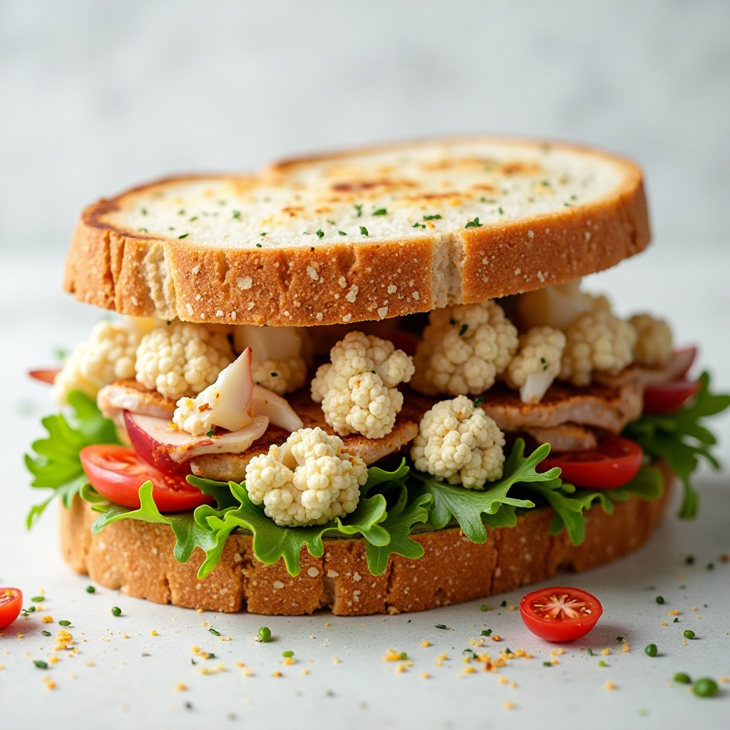 Este sándwich ofrece una combinación equilibrada de proteínas, fibra y vitaminas presentes en las verduras y frutas. La carne de cerdo Olt puede ser reemplazada por opciones más ligeras, como pollo o ternera, si se busca una versión con menos grasa. La inclusión de coliflor y peras añade un toque saludable y antioxidante a esta comida.