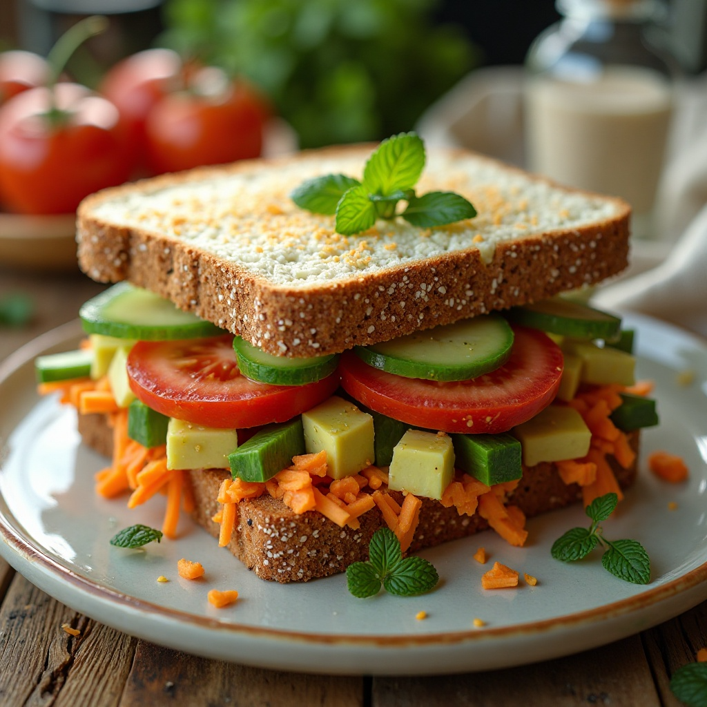 Este sándwich es una opción baja en calorías pero rica en vitaminas y minerales, gracias a las verduras frescas. El aguacate contribuye con grasas saludables, mientras que la menta añade un toque fresco que mejora la digestión. Se puede ajustar la sal según el gusto personal, especialmente si se es sensible a los alimentos procesados.