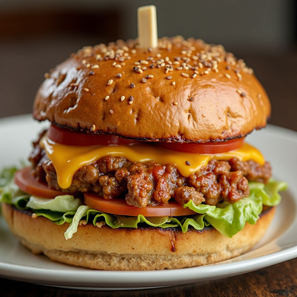 - En cada panecillo, coloca una capa de lechuga, añade la mezcla de carne, y termina con más verduras frescas y un poco de mayonesa y mostaza. Cubre con el segundo panecillo.