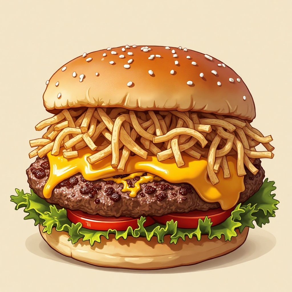 Esta receta es alta en proteínas y grasa saturada debido a la carne y al queso, pero también contiene carbohidratos en forma de pan y papas fritas. Para una versión más saludable, considera utilizar carne magra o reemplazar el pan de hamburguesa por pan integral.