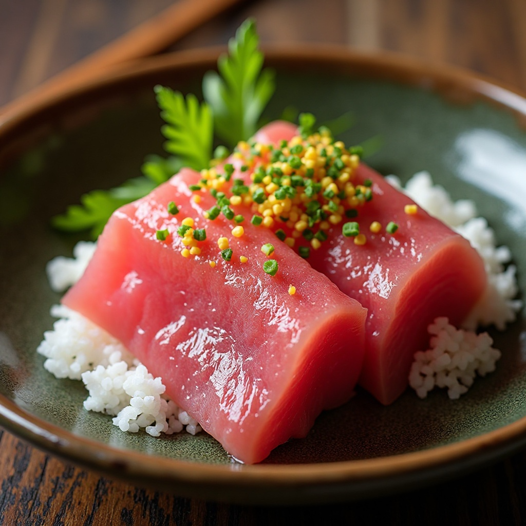 Matsue es una ciudad conocida por su tradición del pescado y mariscos, y «Doburoku» es un término que se refiere a un tipo específico de atún rojo de agua fría con un sabor excepcionalmente suave y jugoso. Esta receta ofrece una manera refinada y elegante de disfrutar de este tesoro del mar, preparándolo como sashimi, un plato japonés que destaca la calidad del pescado en su presentación más pura. Este plato es ideal para ocasiones especiales o simplemente para apreciar los sabores naturales del pescado.