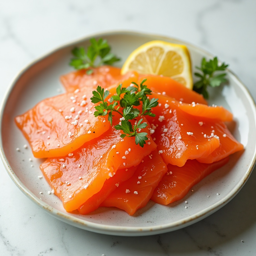 El salmón de Alaska es una fuente excepcional de ácidos grasos omega-3, beneficiosos para el corazón y la salud cerebral. Además, su bajo contenido en grasa saturada lo hace un alimento más saludable en comparación con otros pescados grasosos. Servir este sashimi con jugo de limón ayuda a mantener los alimentos frescos y seguros para el consumo crudo.