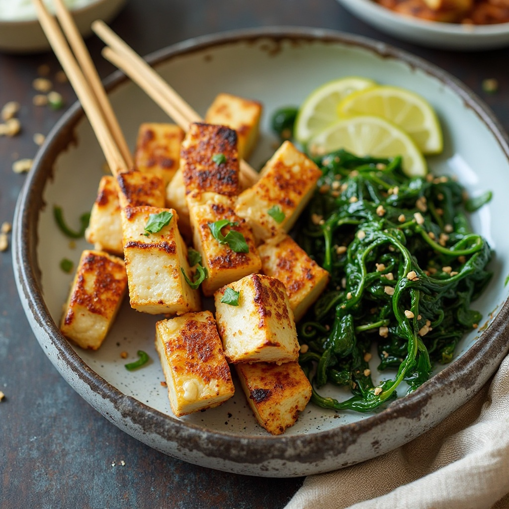 Receta de Sate Klathak con Tofu en Yogurt de Jengibre y Limón