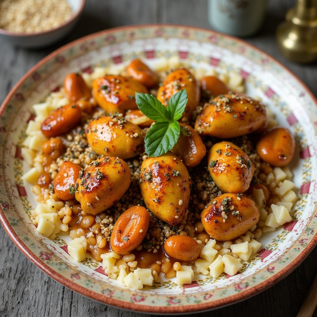 El satsivi es un plato tradicional georgiano, conocido por su rica salsa de nueces y una variedad de especias, que se sirve con pollo o caracoles. La inclusión de vino de Gori añade un toque único, ya que este vino, originario de la región de Gori en Georgia, es famoso por su sabor robusto y especiado. Esta receta es ideal para un almuerzo o cena familiar, ofreciendo una experiencia culinaria rica en sabores mediterráneos y orientales.