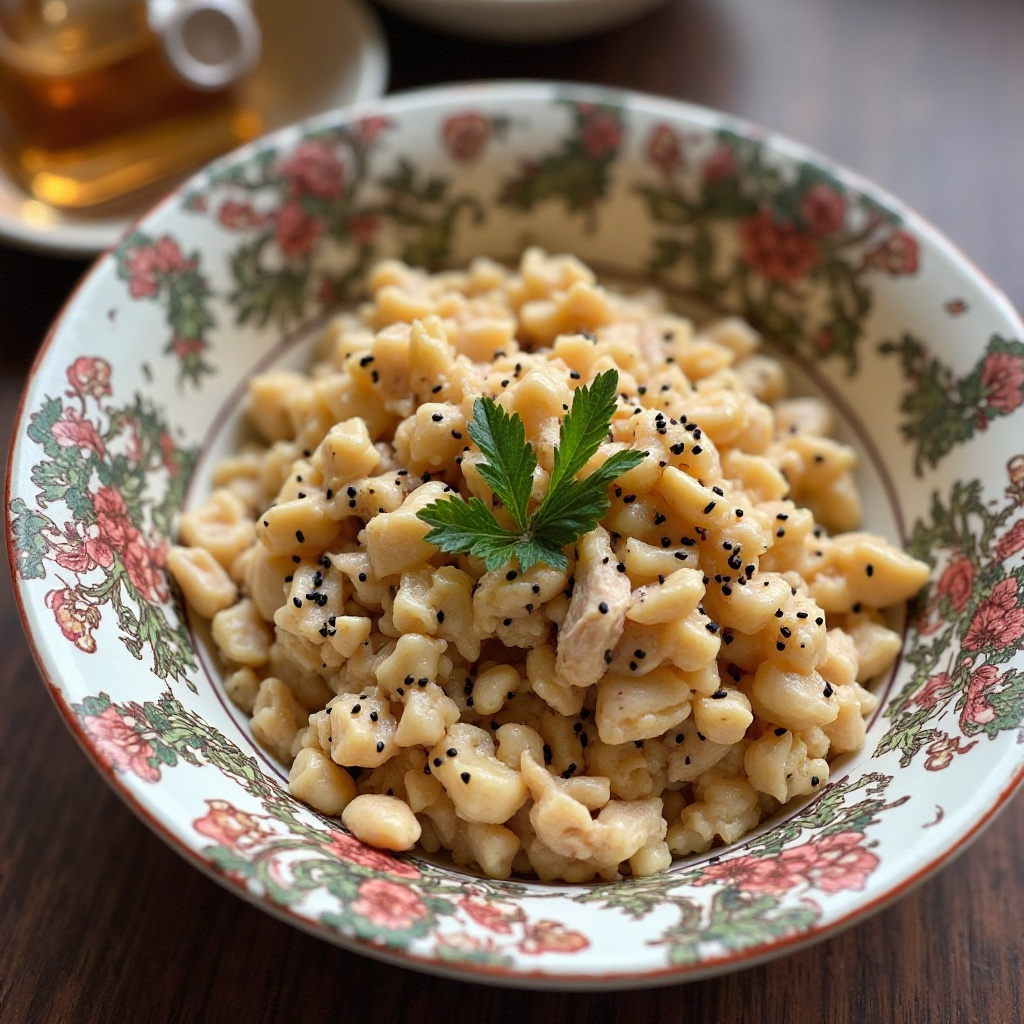 El satsivi es un plato tradicional georgiano que se sirve con pollo o cordero y está bañado en una salsa cremosa hecha de almendras. Esta versión especial incorpora el vino georgiano, especialmente apreciado en la región de Rustavi, añadiendo un toque distintivo a este delicioso plato. Perfecto para ocasiones especiales o simplemente para disfrutar de la rica cultura georgiana en tu hogar.