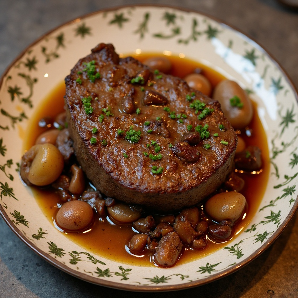 - Retira el Sauerbraten del horno. Cubre con papel sulfurizado para mantener caliente y reposa durante al menos 15 minutos antes de servir. Sirve con puré de patatas o acompañamientos tradicionales de la región.
