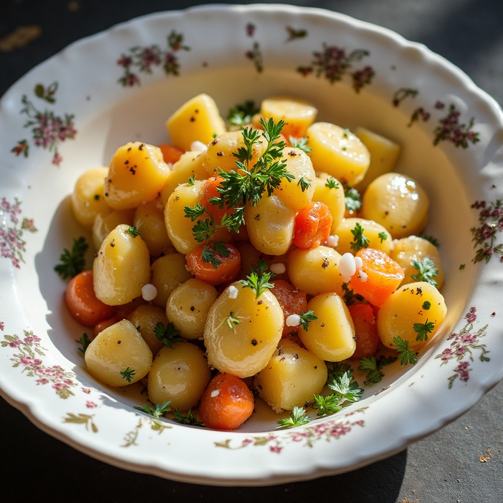 La ciudad de Rakvere, ubicada en el centro de Estonia, es famosa por su rica tradición culinaria que se mezcla con influencias extranjeras. Este plato, inspirado en las verduras locales y la costumbre de usar ingredientes simples para crear sabores complejos, combina patatas con una base de crumble de cebolla, un toque distintivo de Rakvere. Es ideal para un almuerzo o cena ligera.