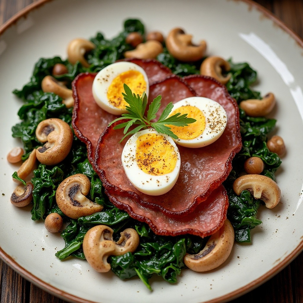 En la región de Merano, conocida por su rica cultura culinaria, el Speck (similar al jamón de York pero con un sabor más fuerte) es un ingrediente muy apreciado. Esta receta del Schinkenwürstel (cuchara de Speck) con champiñones y espinacas es una delicia que combina la robustez del Speck con los sabores suaves de las verduras, creando un plato versátil y delicioso.