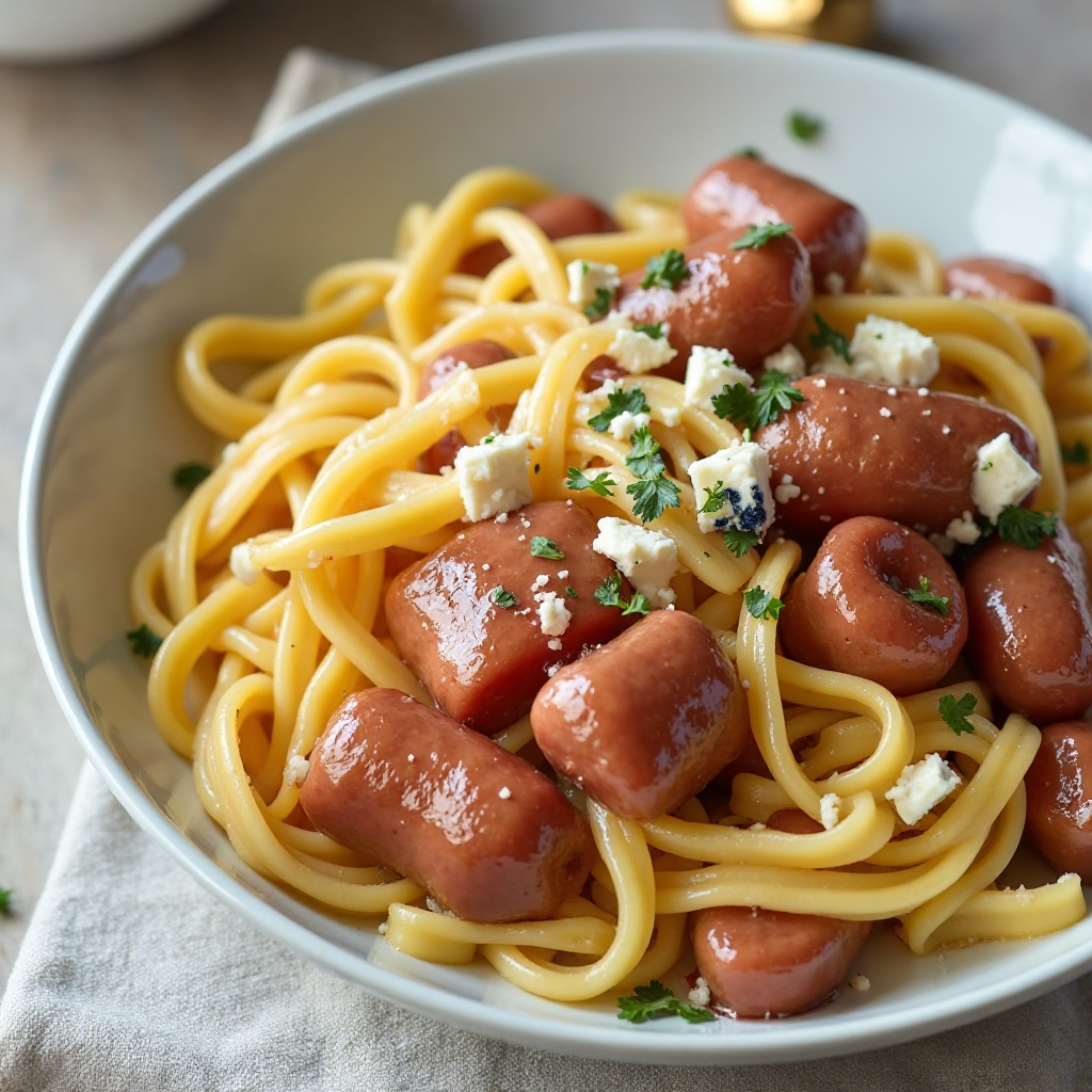 El plato Schupfnudeln mit Salchichas de Núremberg es un deleite tradicional que se disfruta principalmente en la región de Núremberg, Alemania. Este plato refleja la rica cultura culinaria del país, fusionando una pasta local con las famosas salchichas de la zona. La elección del queso azul añade una textura y sabor distintivos que elevan la experiencia gastronómica.