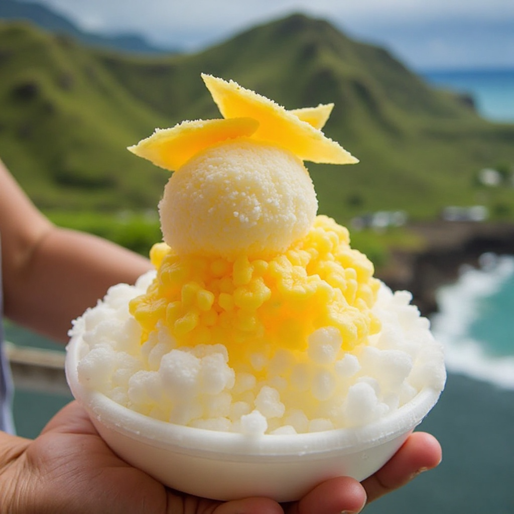 En Kapaa, Kauai, Estados Unidos, los residentes y visitantes disfrutan de una variante única de shave ice, un helado fino y cubierto con una variedad de sabores. Este plato ha sido adaptado para incluir los productos frescos locales, destacando la fruta del paraíso hawaiana, conocida como poi. Esta receta combina la tradición de los shave ice con los sabores tropicales de Kauai para ofrecer una experiencia refrescante y llena de sabor.