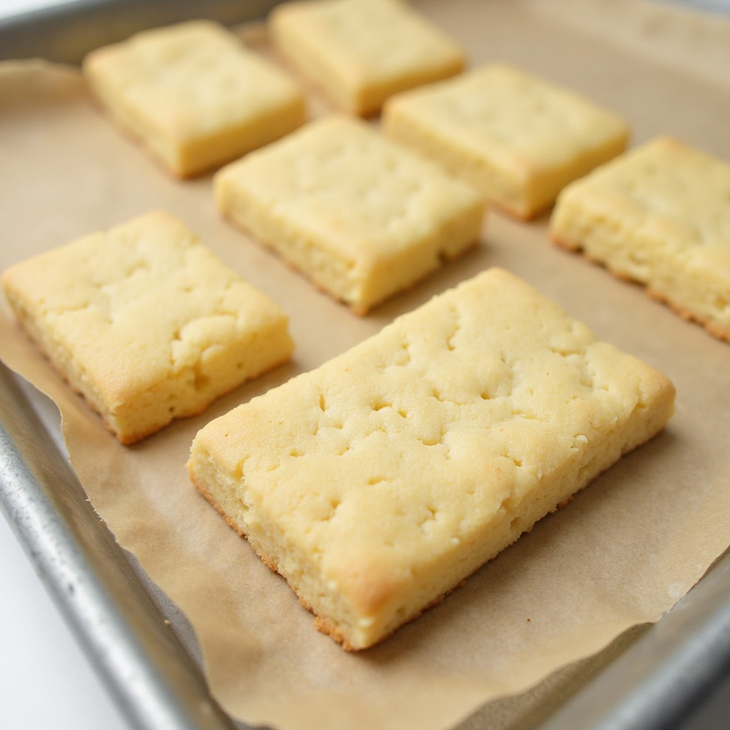 - Hornea por aproximadamente 20-25 minutos, hasta que el shortbread esté dorado y ligeramente crujiente. Verifica el tiempo de cocción dependiendo del horno, ya que puede variar.