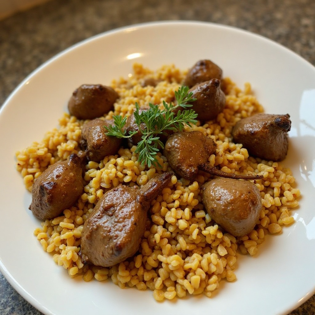 5. Sirve la mezcla de cordero y arroz caliente, y acompaña con un chorrito de limón fresco si lo deseas.