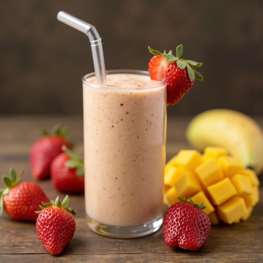 - Sirve el smoothie en un vaso alto, adornado con una guarnición de fresas o mango fresco. ¡Disfruta tu refrescante bebida tropical!