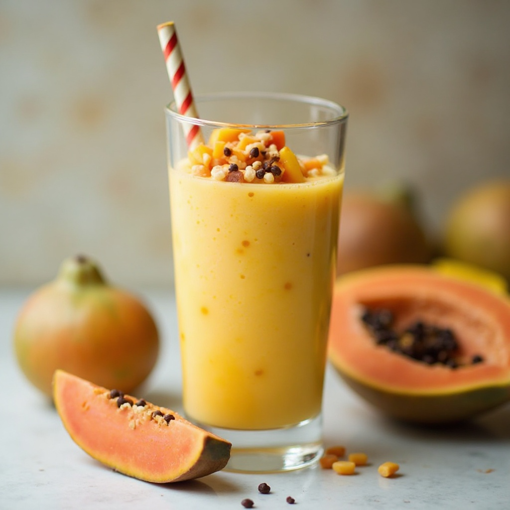 Los smoothies son populares en muchas culturas por su versatilidad y facilidad de preparación. En los Estados Unidos, especialmente en zonas costeras o con influencia caribeña y tropical, los ingredientes como la papaya y el mango son más accesibles, permitiendo a los habitantes crear recetas inspiradas en sus raíces culturales o simplemente disfrutar de sabores exóticos. Este smoothie refleja una fusión de prácticas culinarias modernas y sabores tropicales, ofreciendo una opción saludable y deliciosa para cualquier época del año.